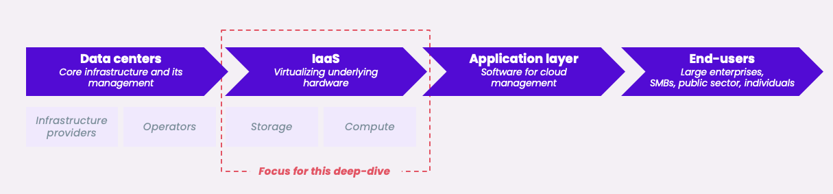 Compute- and Storage-as-a-Service have always been the core products for hyperscalers, allowing for a broad offering of applications and end-use cases. Now, new customer needs are emerging, especially for the IaaS layer, giving more space for specialized players to emerge.